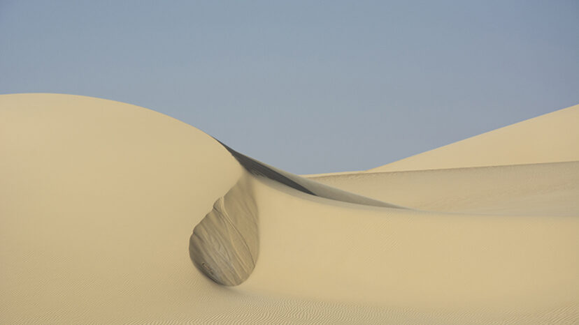 Lo scatto della duna proposta da Giancarlo Cistriani, medico in pensione del cremonese, ci permette di rilevare alcuni spunti per indicare una corretta inquadratura: il corretto utilizzo delle linee delle creste, il contrasto dei colori, le piccole increspature create dal vento sulla sabbia che guidano l’occhio al punto più alto della duna principale.