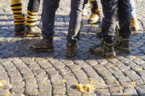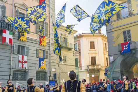 Dal punto di vista fotografico, il dinamismo è uno degli aspetti più forti della foto. C’è movimento ovunque: le arance che volano, i soggetti che lanciano con energia, il contrasto tra gli chi assalta e chi controbatte dai carri. La forza dell’immagine permette a chi la osserva di sentirsi all’interno della scena, nel pieno dell’azione, tra storia, tradizione e quella che a un occhio esterno può sembrare un attimo di follia collettiva.