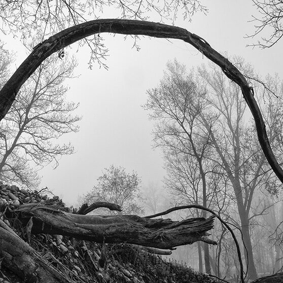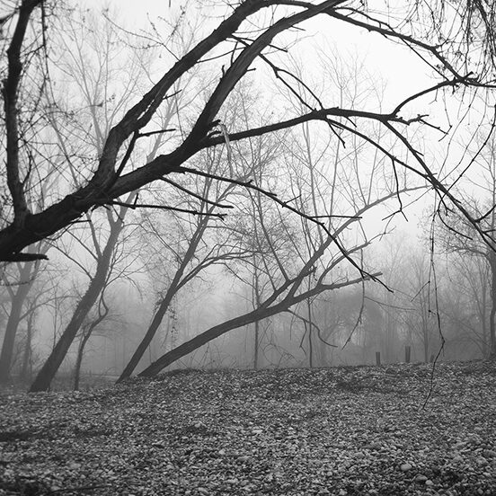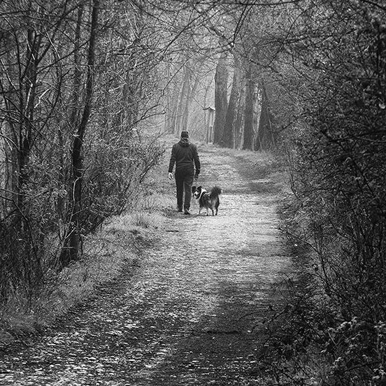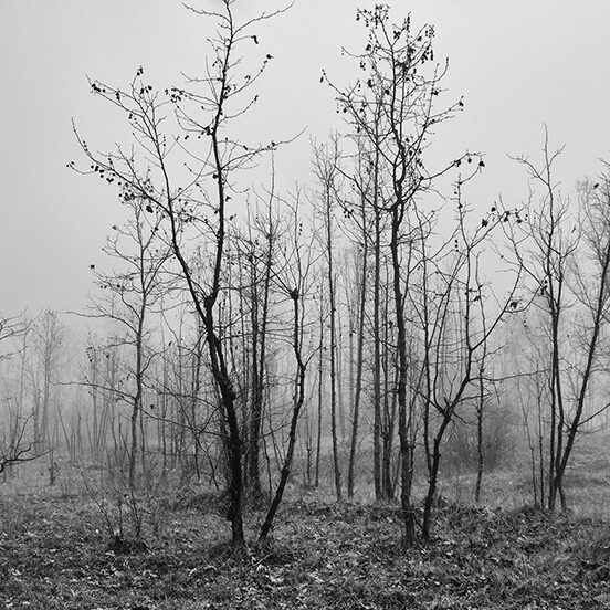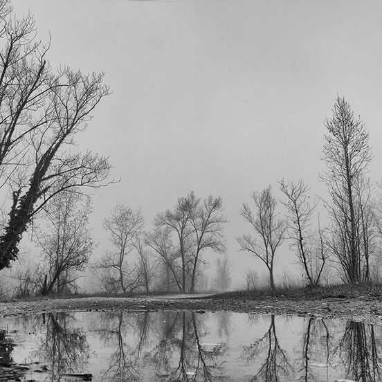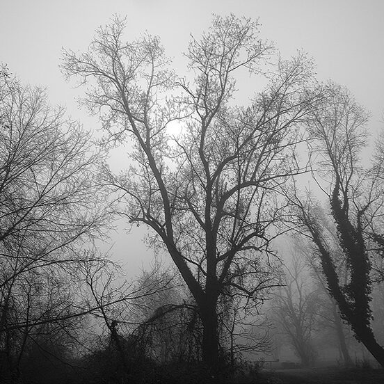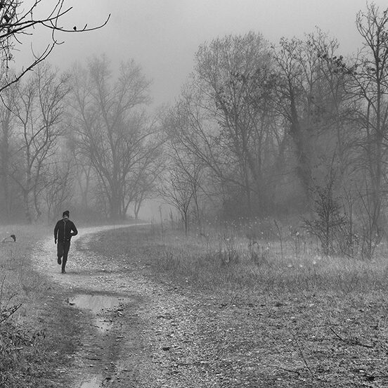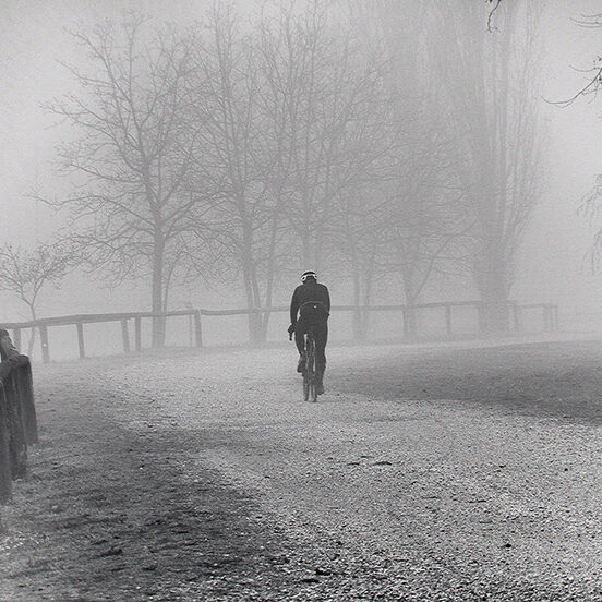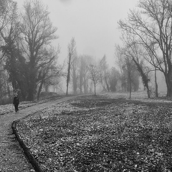 Puoi percorrere luoghi abituali più volte, ma raramente trovare le condizioni e le situazioni che ti ispirano un’emozione particolare, che ti permettano di sintonizzarti con il tuo stato d’animo. Sono uscito al mattino presto, sfidando la pigrizia, in una giornata fredda e nebbiosa e questo luogo si è trasformato in un luogo magico, pieno di visioni, silenzi, alberi spogli come spettri che spuntano dalla nebbia mattutina e rari incontri inaspettati: persone che portano a spasso il cane immersi nei loro pensieri o sportivi che, nonostante le condizioni avverse, affrontano con abnegazione la loro seduta di allenamento. Ho ripensato alle parole del grande Ansel Adams: “Delle volte arrivo in certi luoghi proprio quando Dio li ha resi pronti affinché qualcuno scatti una foto”. E mi piace pensare che fosse proprio quella giornata lì.