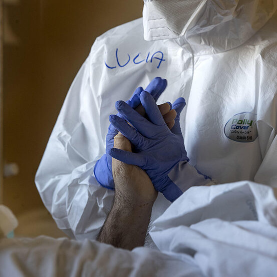 Per non far mancare la nostra testimonianza, abbiamo selezionato alcuni tra i migliaia di scatti che i fotografi della principale agenzia giornalistica italiana hanno realizzato e sentito tre fotoreporter che ci hanno raccontato le sensazioni, i ricordi e le difficoltà di quelle giornate, trascorse nel tentativo di immortalare lo sforzo dei tanti medici e sanitari che quella pandemia l’hanno guardata dritta negli occhi.