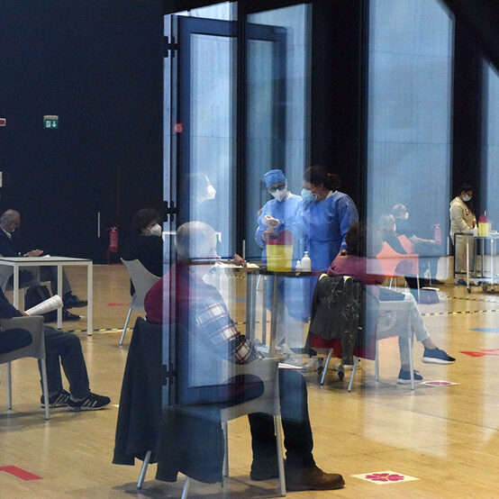 “All’inizio ho trovato molte difficoltà a raccontare il lavoro dei sanitari e la situazione dei pazienti perché per entrare in ospedale, e ancora di più nei reparti di terapia intensiva, noi freelance dovevamo procuraci tute e Ffp2, in quel periodo introvabili. Quindi le prime foto le ho fatte dall’esterno delle strutture, come nel caso dell’hub vaccinale ritratto in uno degli scatti che avete scelto”.