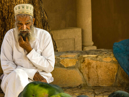 La fotografia, scattata da Paolo Danise al mercato di Sinaw, in Oman, documenta uno dei luoghi più caratteristici del Paese. Il mercato è noto soprattutto per la compravendita di cammelli, capre e bestiame, ed è un punto di riferimento per la vita economica e sociale della regione.