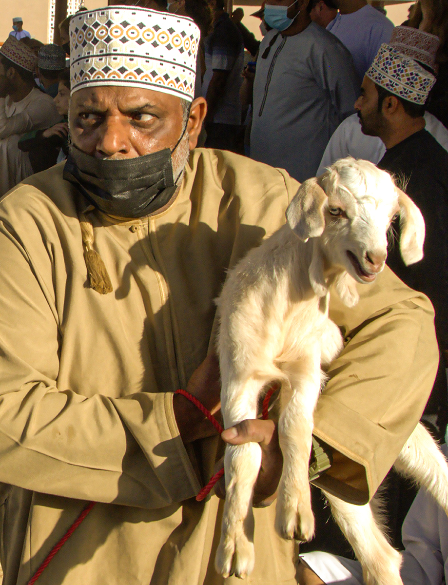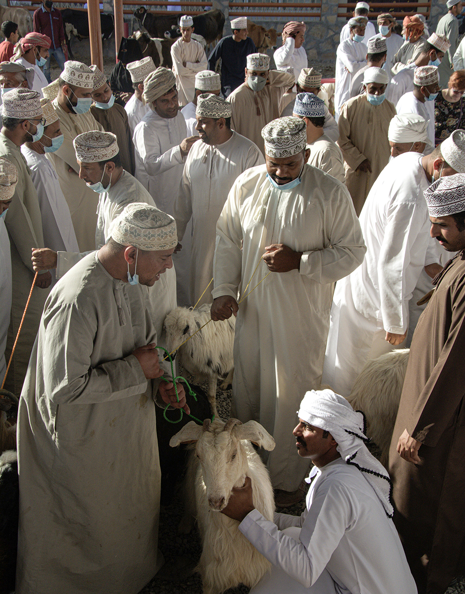 La fotografia, scattata da Paolo Danise al mercato di Sinaw, in Oman, documenta uno dei luoghi più caratteristici del Paese. Il mercato è noto soprattutto per la compravendita di cammelli, capre e bestiame, ed è un punto di riferimento per la vita economica e sociale della regione.